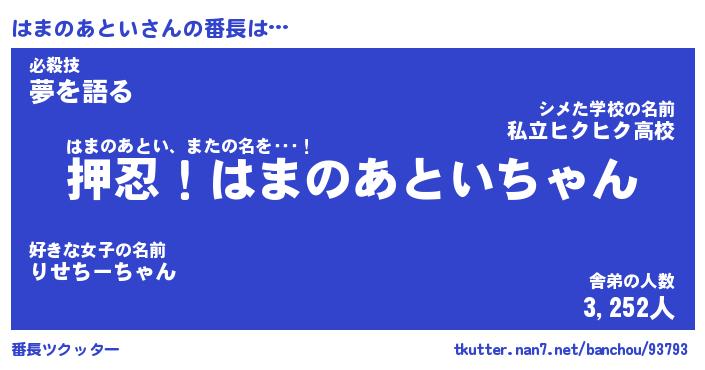 | ヒーロー風カッコイイあだ名 | 『スーパーハマノアトイ』『魔戒騎士ハマ』 |