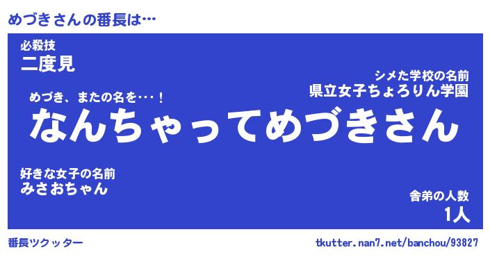 | 肩書あだ名 | 『めづき社長令嬢』『めづき国家主席』 |