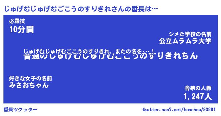 | ヒーロー風カッコイイあだ名 | 『スーパージュゲムジュゲムゴコウノスリキレ』 |