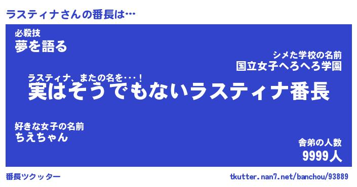 | ヒーロー風カッコイイあだ名 | 『スーパーラスティナ』『天弓騎士ラス』 |