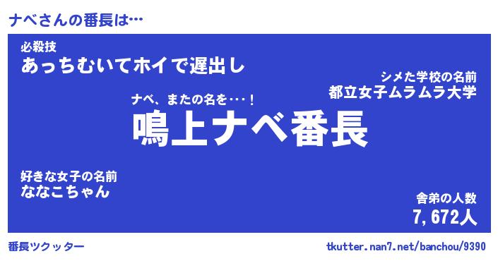 | ピコ太郎風あだ名 | 『ナコ三郎』『ピナ六郎』『ナベ十郎』 |