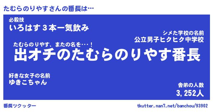 | ヒーロー風カッコイイあだ名 | 『スーパータムラノリヤス』 |