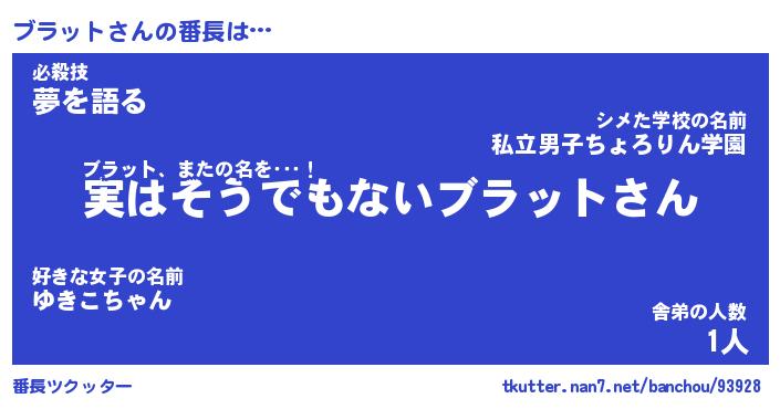 | 意味不明あだ名 | 『ペロリンブラット』『永久保存ブラット』 |