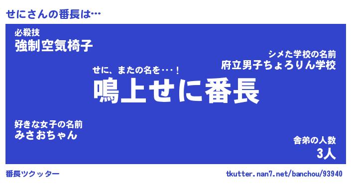 | ヒーロー風カッコイイあだ名 | 『スーパーセニ』『ウルトラせにマン』 |