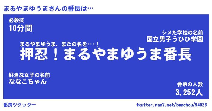 | 伝説のあだ名 | 『封印されしスナイパーまるやまゆうま』 |