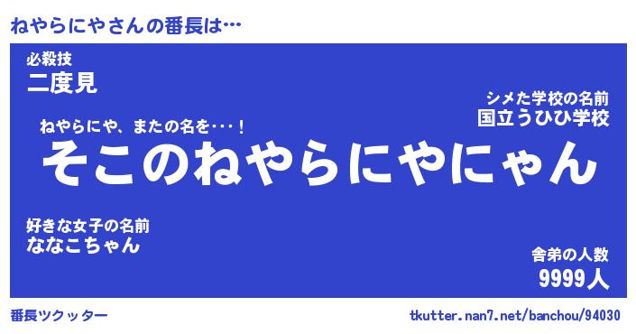 | 2回繰り返すあだ名 | 『ねやねや』『ねねやや』『ねばねば』 |