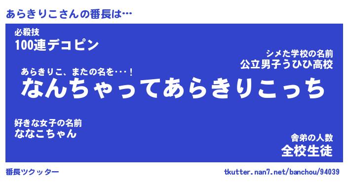 | ヒーロー風カッコイイあだ名 | 『スーパーアラキリコ』『暗黒騎士アラ』 |