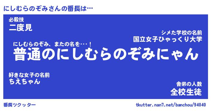 | 肩書あだ名 | 『にしむらのぞみ社長』 |