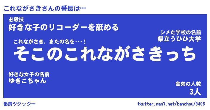 | 男性向けラノベタイトル風あだ名 | 『これながさきの憂鬱』 |