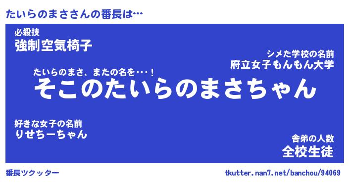 | 肩書あだ名 | 『たいらのまさ店長』『たいらのまさ団長』 |
