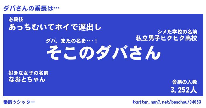 | ポケモン風あだ名 | 『ダバチュウ』『ダバダネ』『ヒダバ』 |
