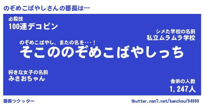 | 伝説のあだ名 | 『不死鳥のスナイパーのぞめこばやし』 |