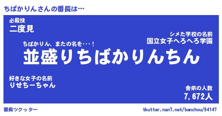 | 2回繰り返すあだ名 | 『ちばちば』『ちちばば』『ぬれぬれ』 |