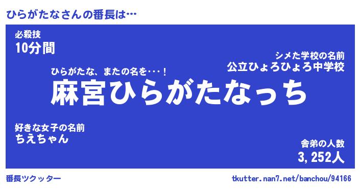 | ピコ太郎風あだ名 | 『ヒコ次郎』『ピヒ六郎』『ヒラ史郎』 |
