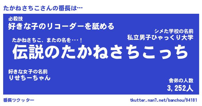 | 意味不明あだ名 | 『ペロリンたかねさちこ』 |