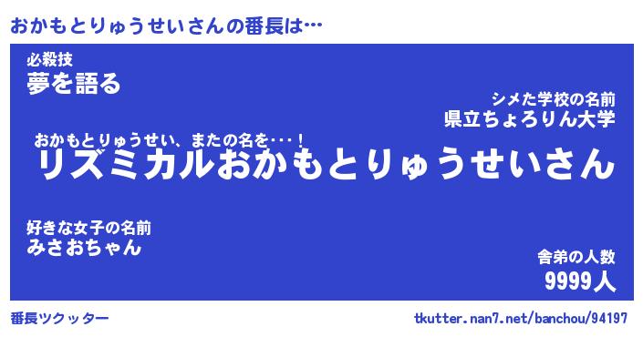 | 肩書あだ名 | 『おかもとりゅうせい店長』 |