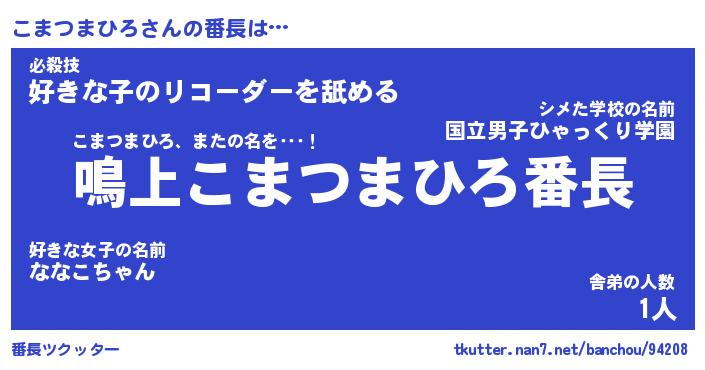 | ヒーロー風カッコイイあだ名 | 『スーパーコマツマヒロ』『黄金騎士コマ』 |