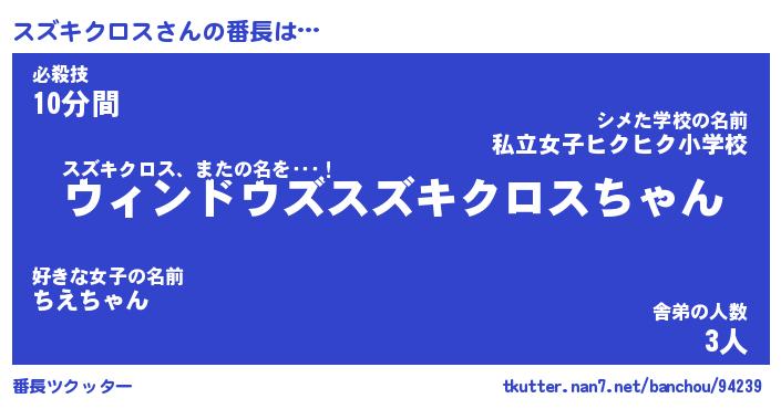 | ポケモン風あだ名 | 『スズチュウ』『スズキダネ』 |