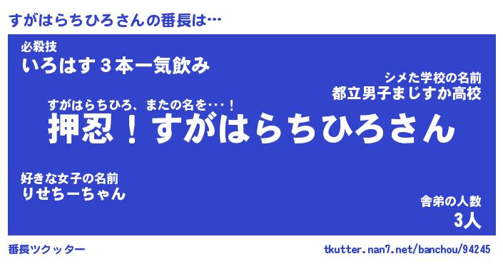 | ヒーロー風カッコイイあだ名 | 『スーパースガハラチヒロ』 |
