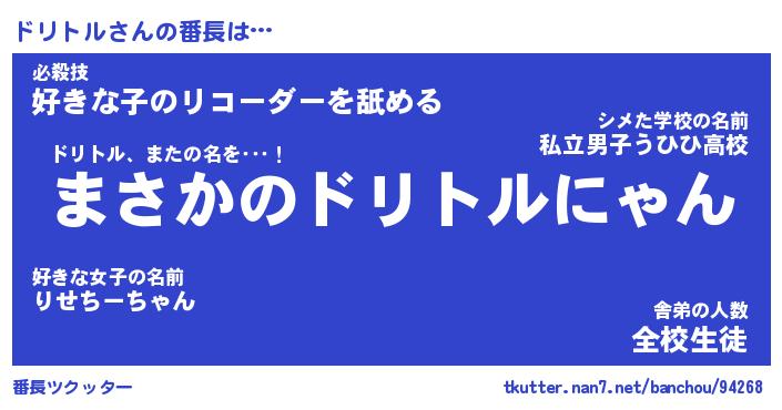 | 意味不明あだ名 | 『ペロリンドリトル』『永久保存ドリトル』 |