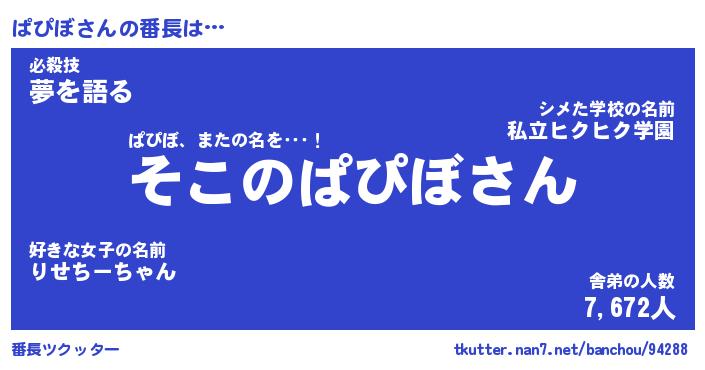 | 肩書あだ名 | 『ぱぴぼ店長』『ぱぴぼ大統領』 |