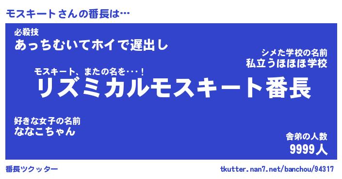 | ヒーロー風カッコイイあだ名 | 『スーパーモスキート』『天弓騎士モス』 |