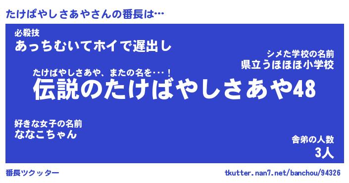 | 肩書あだ名 | 『たけばやしさあやCEO』 |