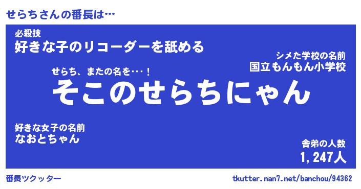 | ヘコむあだ名 | 『せらもー』『酢こんぶ』『せらっ子』 |