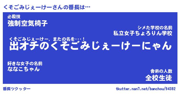 | 男性向けラノベタイトル風あだ名 | 『くそごみじぇーけーの憂鬱』 |