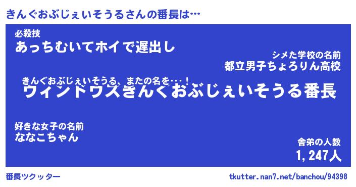| 肩書あだ名 | 『きんぐおぶじぇいそうる御曹司』 |
