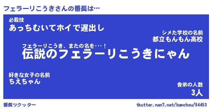 | 伝説のあだ名 | 『伝説の竜騎士フェラーリこうき』 |