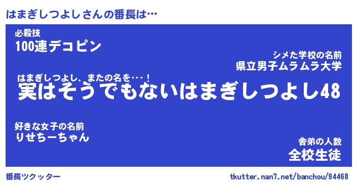 | 肩書あだ名 | 『はまぎしつよし店長』 |