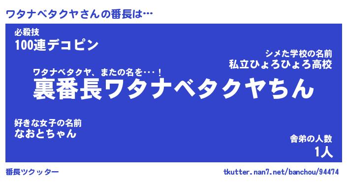 | ピコ太郎風あだ名 | 『ワコ八郎』『ピワ二郎』『ワタ十郎』 |