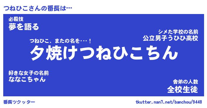 | 意味不明あだ名 | 『ペロリンつねひこ』『永久保存つねひこ』 |