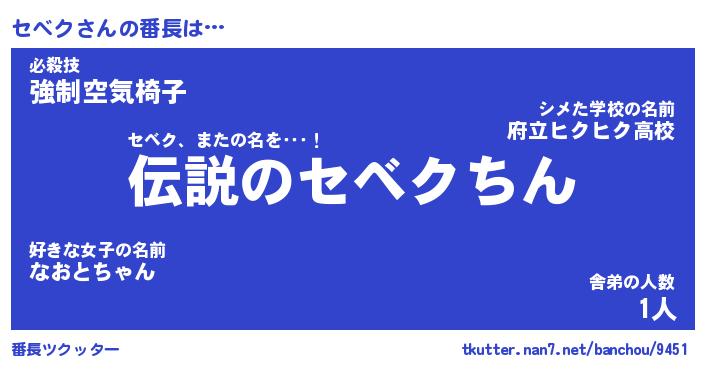 | ヒーロー風カッコイイあだ名 | 『スーパーセベク』『ウルトラセベクマン』 |