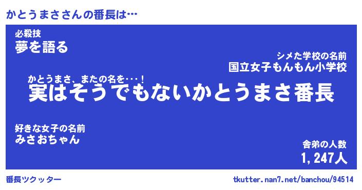 | 伝説のあだ名 | 『封印されしスナイパーかとうまさ』 |