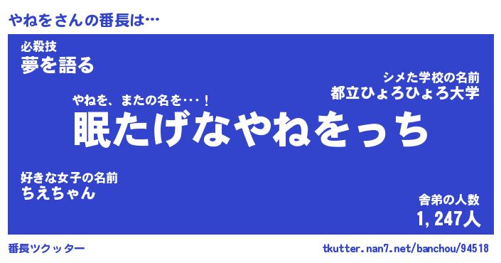 | ヘコむあだ名 | 『やねにー』『豆乳』『やねっちょ』 |