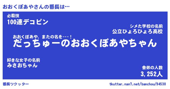 | ヘコむあだ名 | 『おおにゅー』『つくし』『おおお』 |