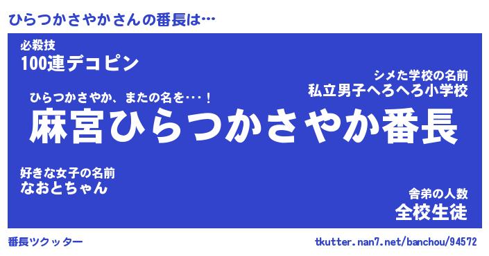 | ヒーロー風カッコイイあだ名 | 『スーパーヒラツカサヤカ』 |