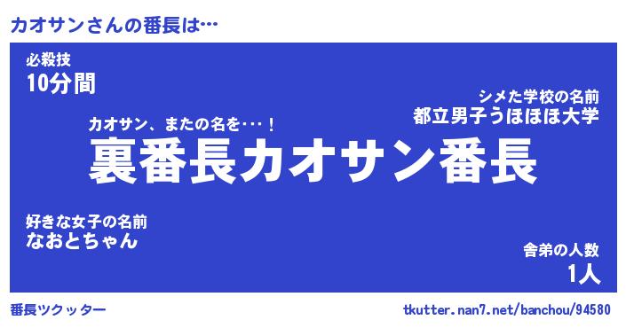 | 2回繰り返すあだ名 | 『カオカオ』『カカオオ』『あんあん』 |