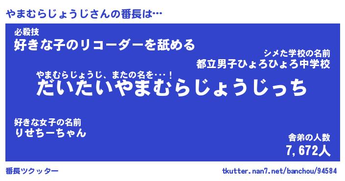 | ツイッター | やまむらじょうじさんのツイッターID『masyumaro_star』 |