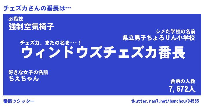 | 意味不明あだ名 | 『ペロリンチェズカ』『永久保存チェズカ』 |
