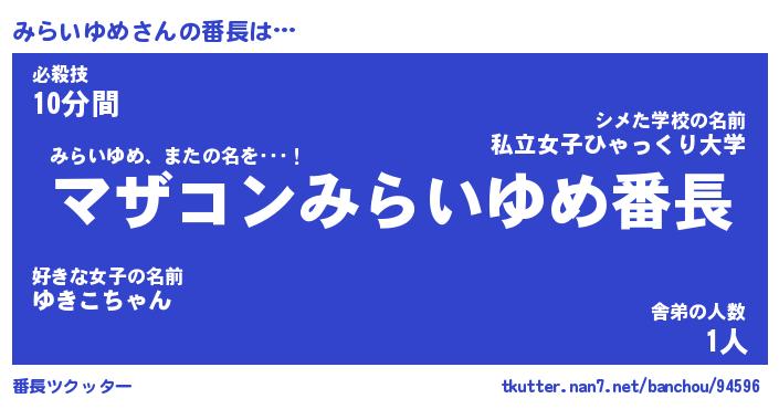 | 肩書あだ名 | 『みらいゆめCEO』『みらいゆめ総理大臣』 |