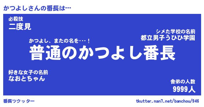 | 意味不明あだ名 | 『ペロリンかつよし』『永久保存かつよし』 |