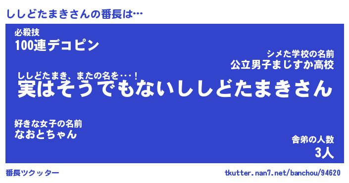 | 伝説のあだ名 | 『封印されしスナイパーししどたまき』 |
