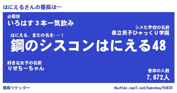 | 意味不明あだ名 | 『ペロリンはにえる』『永久保存はにえる』 |