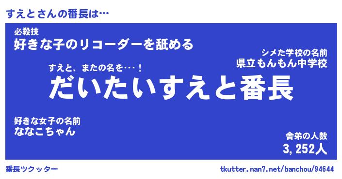 | 2回繰り返すあだ名 | 『すえすえ』『すすええ』『ぬめぬめ』 |