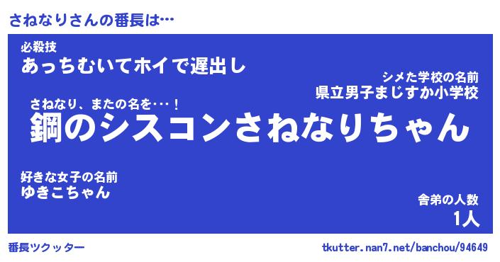 | 意味不明あだ名 | 『ペロリンさねなり』『永久保存さねなり』 |