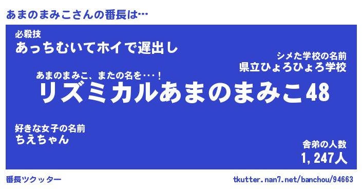 | 伝説のあだ名 | 『伝説のスナイパーあまのまみこ』 |