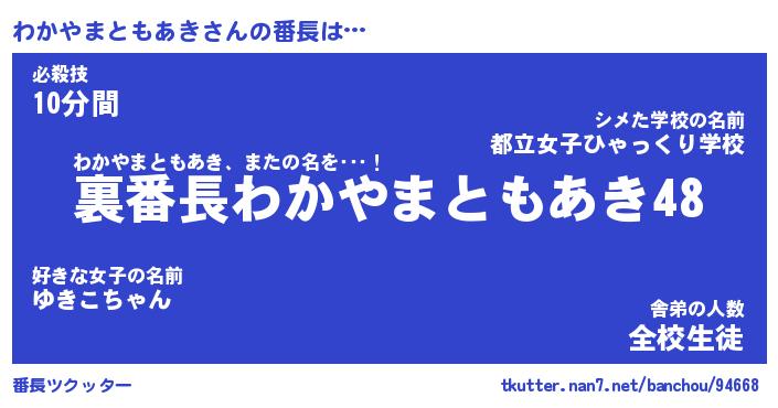| ヒーロー風カッコイイあだ名 | 『スーパーワカヤマトモアキ』 |